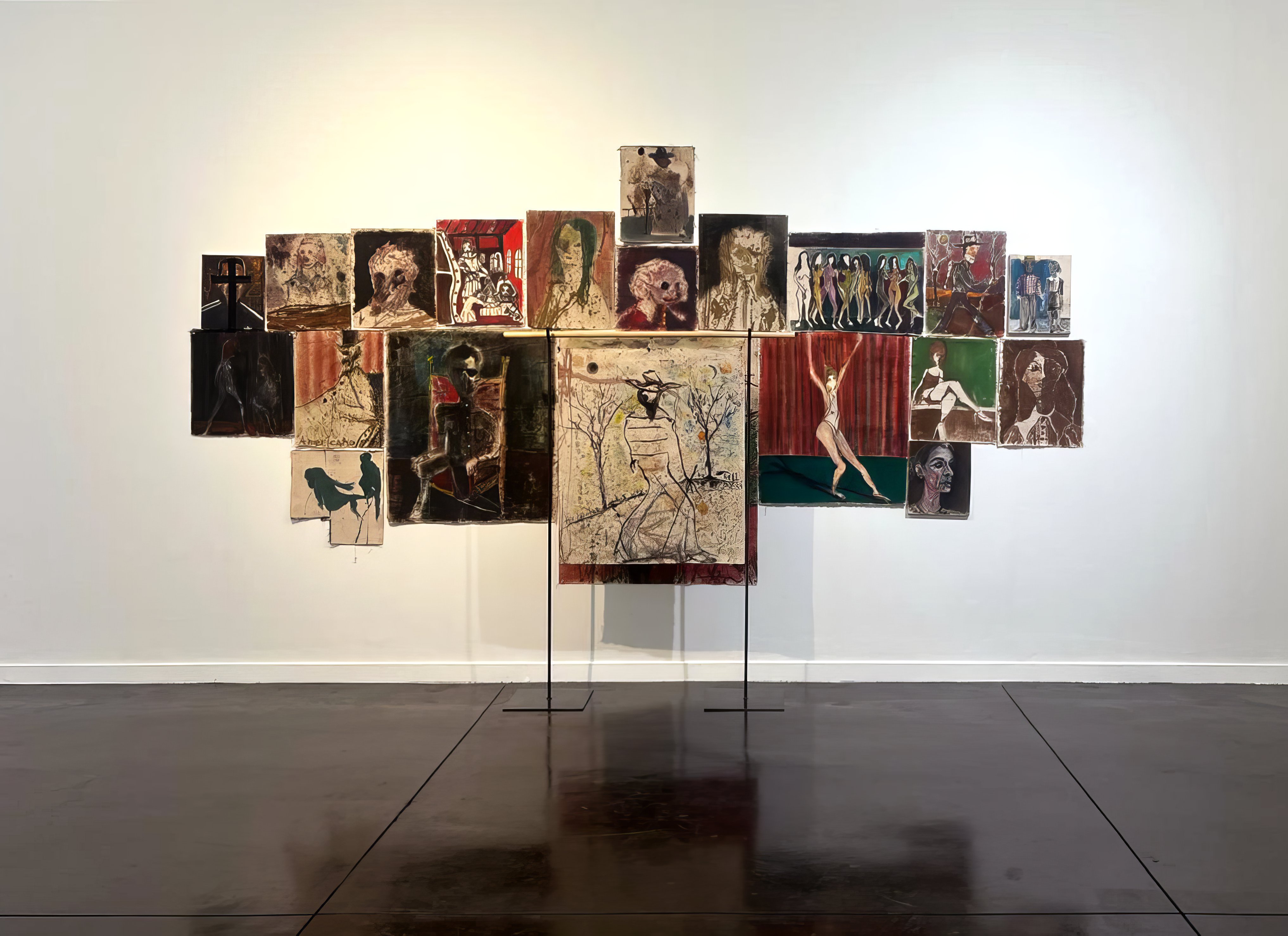 בינות לציורי הדמויות חוזר שוב ושוב ציור ובו אדם הולך. זוהי מחווה לציורו האבוד של וואן גוך The Painter on the Road to Tarascon, ציור המתאר את האמן בדרכו לעבודה, והוא נחשב לדיוקן העצמי הראשון שצייר ואן גוך. הרגע בו הצייר הולך אל הסטודיו הוא הפוטנציאל ואילו הציור של הרגע הזה סוגר מעגל שמותיר את המהלך במקומו. כך הדמות ההולכת כמו מעניקה תנועה לתערוכה כולה ובו בזמן מחזירה אותה לאותו המקום, אל הציור.