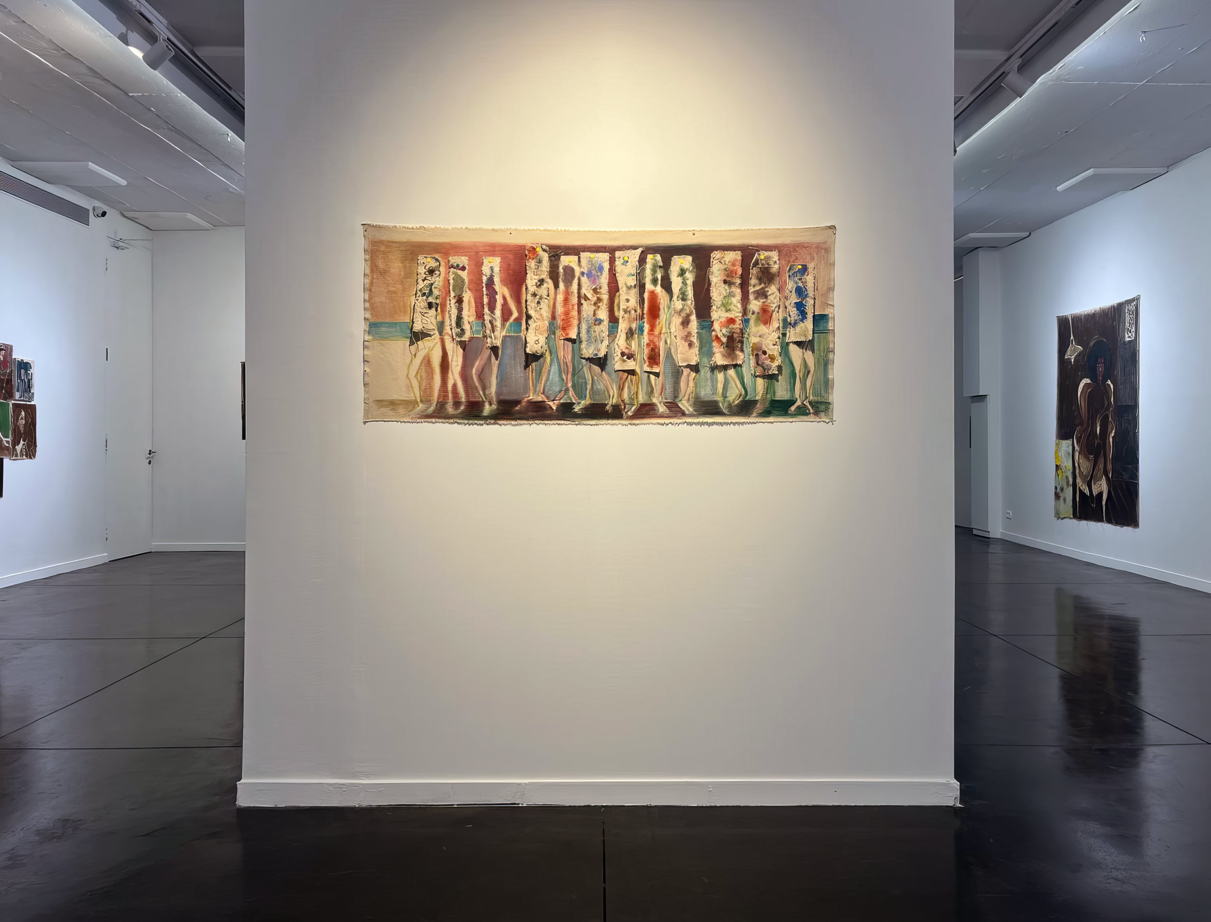 Among the figure paintings, a recurring image appears of a walking man. This is a tribute to Vincent van Gogh’s lost painting The Painter on the Road to Tarascon, which depicts the artist on his way to work and is considered the first self-portrait Van Gogh ever painted. The moment of the painter walking toward the studio embodies potential, while the painting of that moment closes a circle, leaving the movement suspended in place. Thus, the walking figure seems to propel the entire exhibition forward while simultaneously returning it to the same point—back to painting itself.
